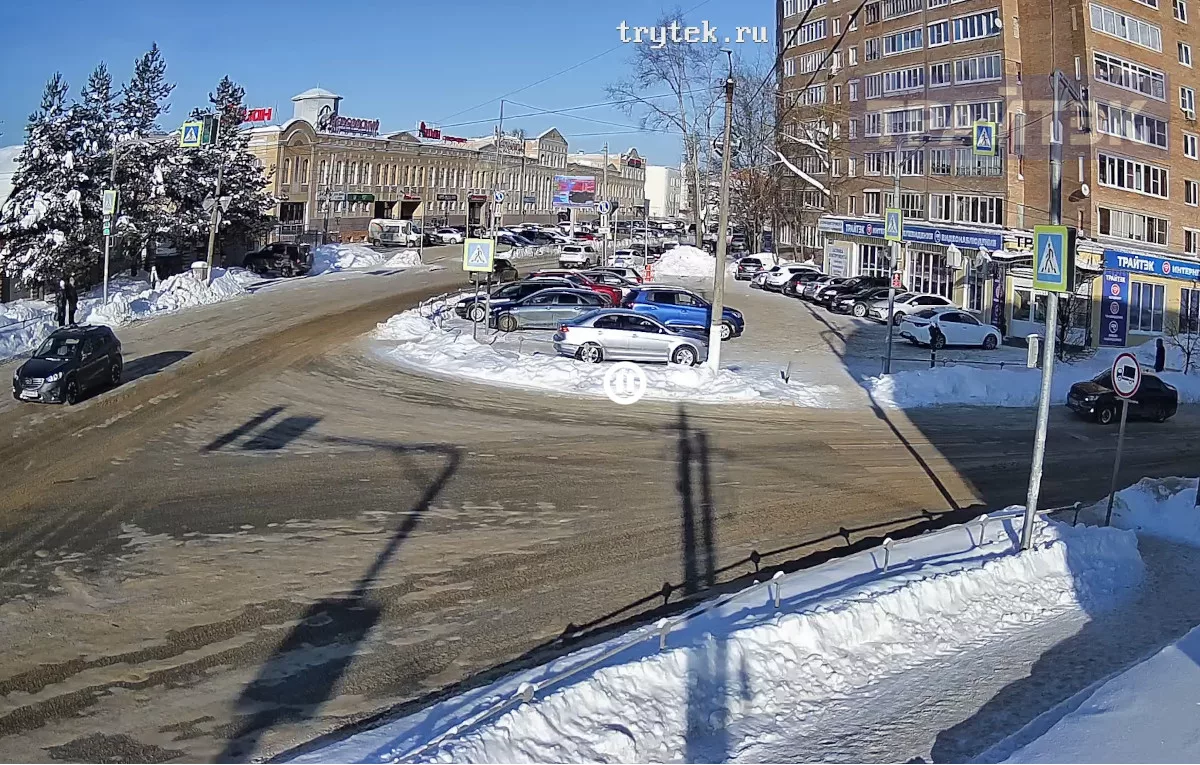 В нескольких шагах от перекрёстка расположен торговый центр — один из заметных коммерческих и социально значимых объектов города. Здесь работают магазины, точки бытовых услуг и кафе, что делает эту зону удобной и оживлённой в течение всего дня.