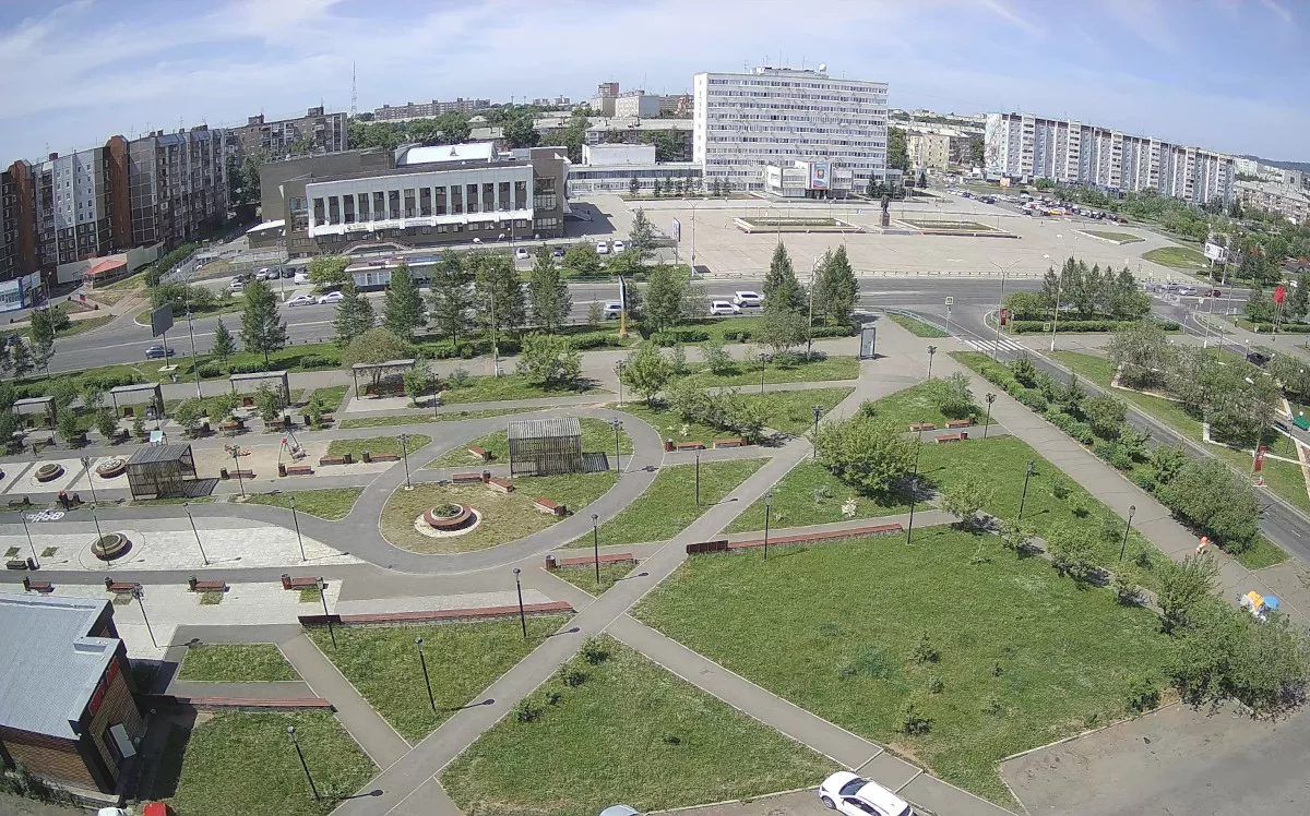 Веб-камера в реальном времени показывает Площадь Ленина в городе Братске в Иркутской области России.