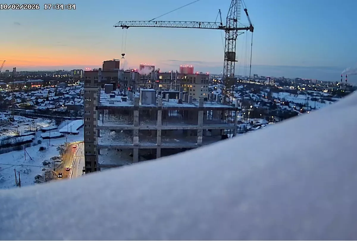 Веб-камера в реальном времени показывает строительство микрорайона «Видный» в городе Иваново в России.