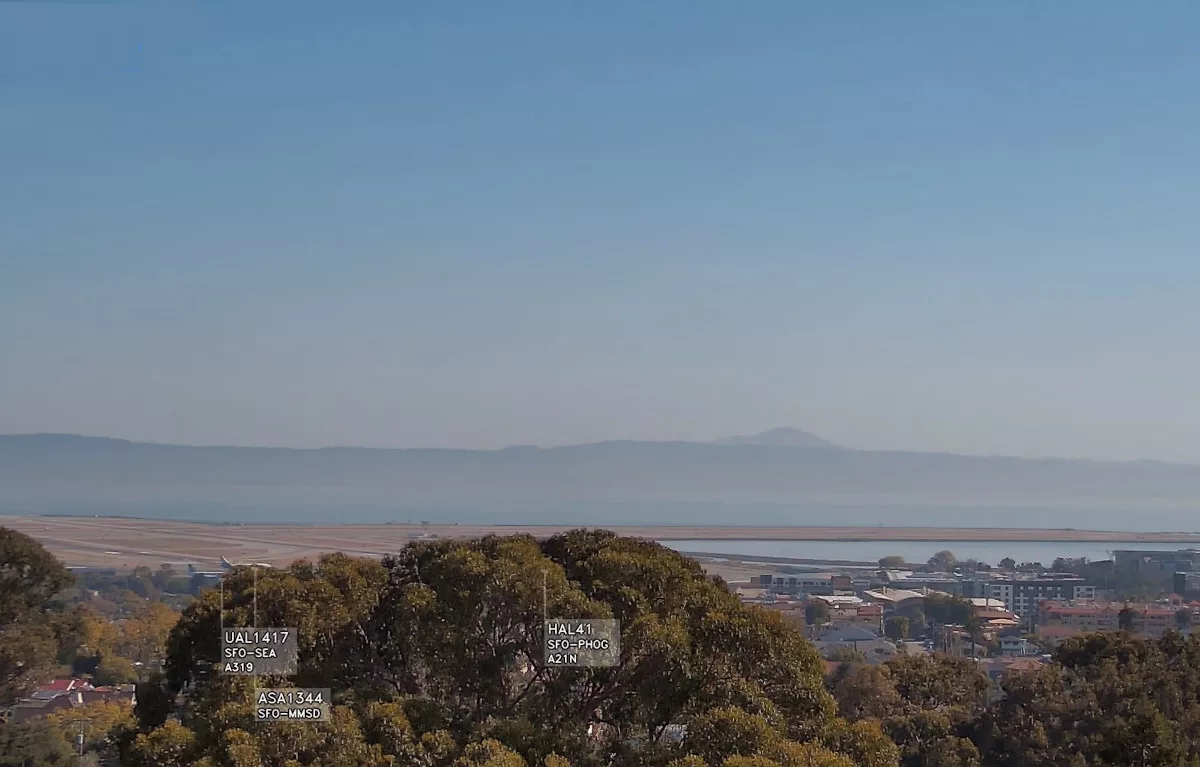 Обзорная веб-камера в реальном времени показывает международный аэропорт Сан-Франциско в Калифорнии в США.