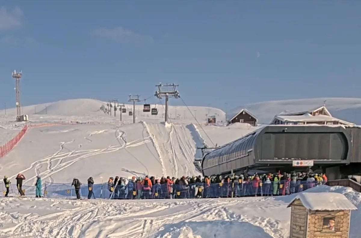 Веб-камера показывает нижнюю станцию подъемника К10 на Южном склоне горнолыжного курорта «Большой Вудъявр».