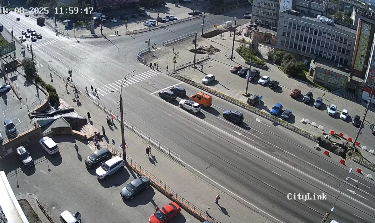 Веб-камера в реальном времени показывает пересечение улиц Карла Маркса и Полярные Зори в Мурманске.
