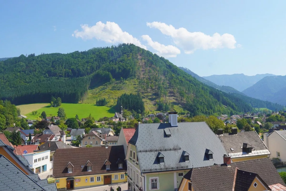 Веб-камера показывает коммуну Холленштайн-на-Ибсе в Австрии, изображение обновляется раз в 30 секунд.