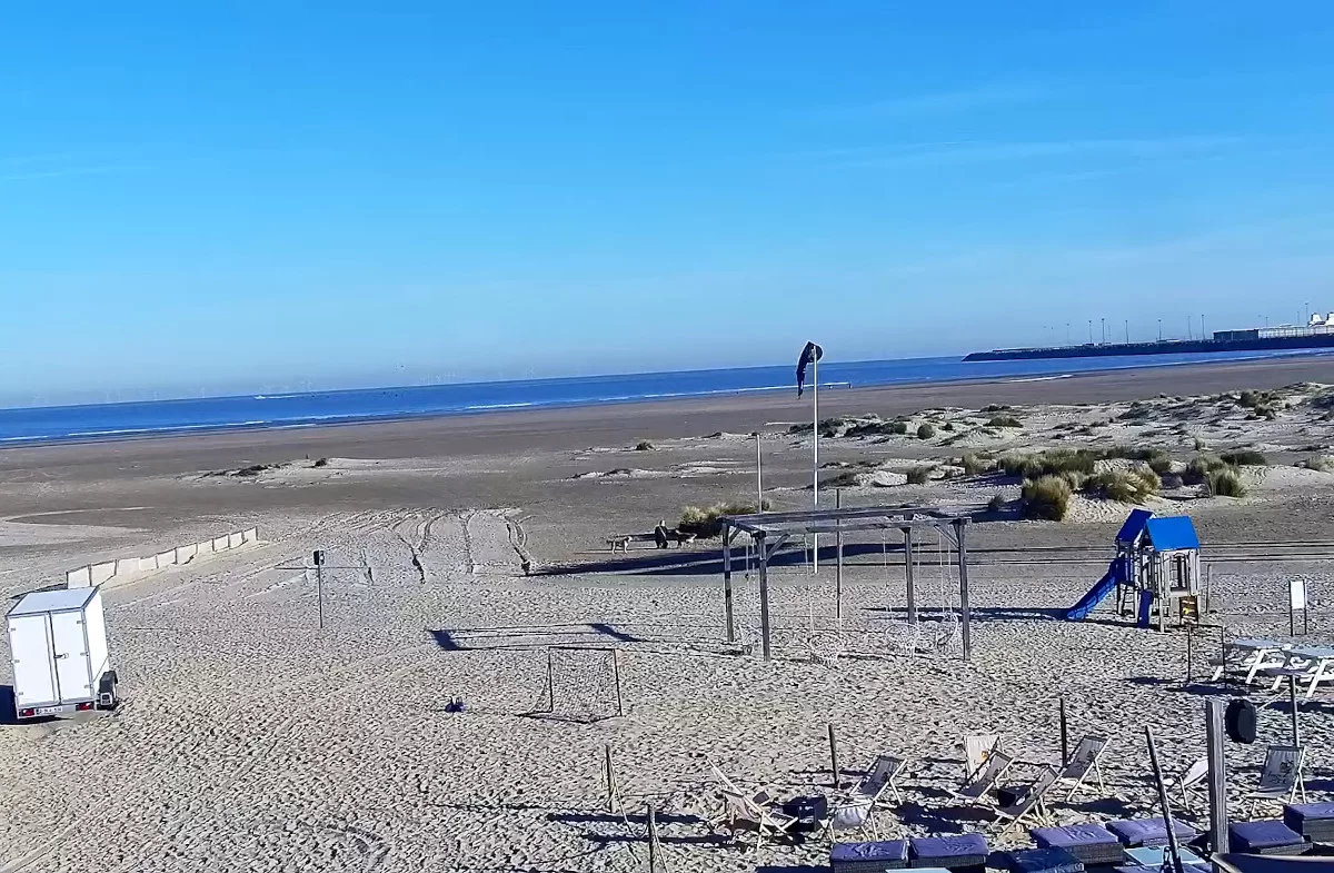 Веб-камера в реальном времени показывает сёрф-клуб «Икар» на пляже Зебрюгге в Бланкенберге в Бельгии.
