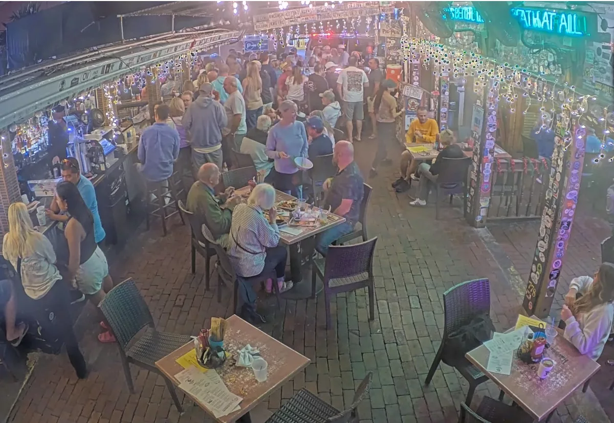 Веб-камера в реальном времени показывает барную стойку паба Hog’s Breath в Ки-Уэсте в штате Флорида, США.