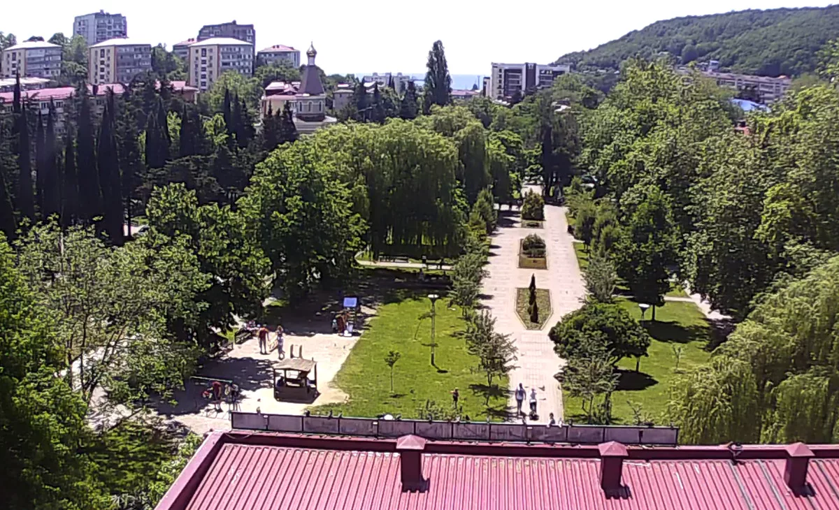 Веб-камера в реальном времени показывает сквер «Алые паруса» в городе Туапсе Краснодарского края России.