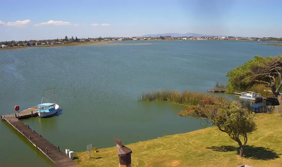 Веб-камера в реальном времени показывает водоем Зеекоевлей в Кейптауне в ЮАР.